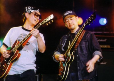 ツインギターをキメる座長と●_●-Jさん